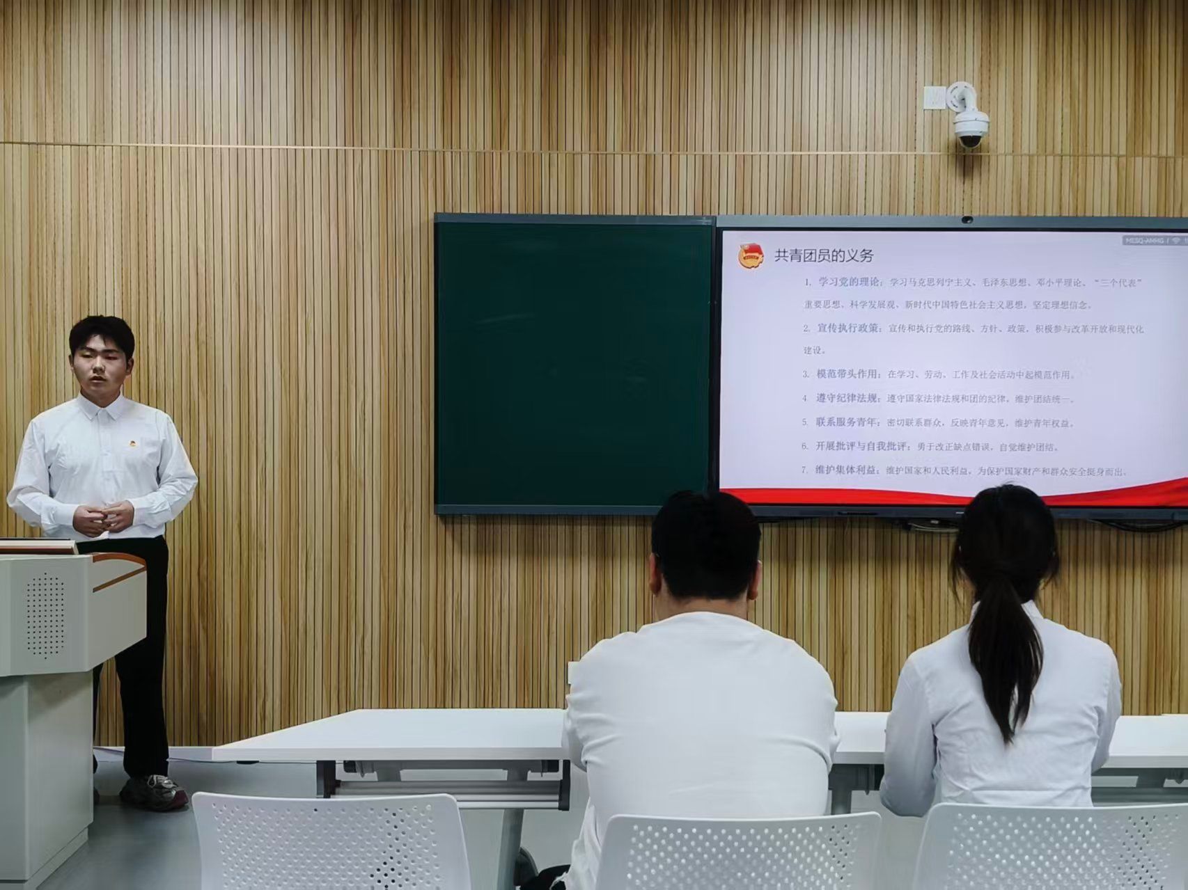 仪式上,新团员代表王梓骞同学作了表态发言,表示将珍视团员身份,牢记誓言,刻苦学习,积极发挥模范带头作用。老团员代表于鹏凯同学围绕“学团章、知团史、做合格团员”主题作了发言,勉励新团员加强理论学习和实践锻炼,提升综合素质。
