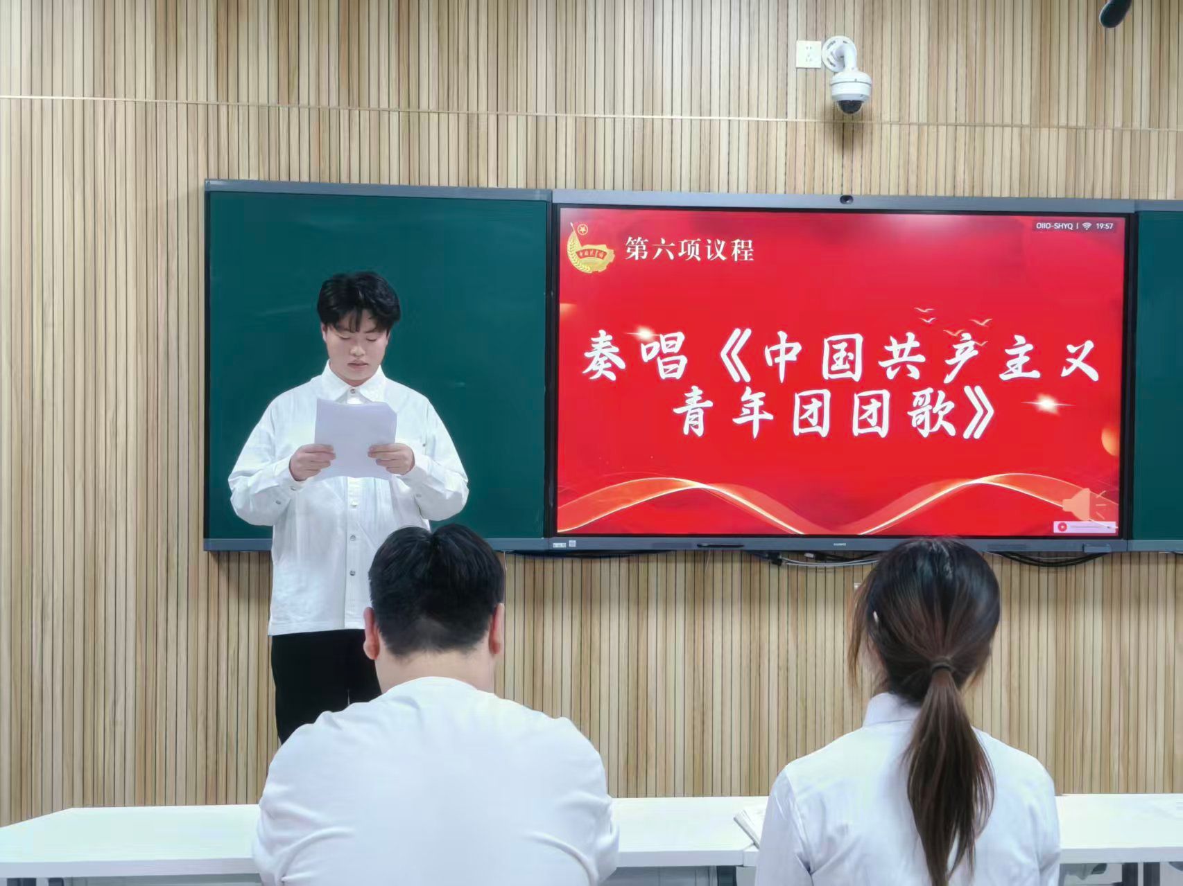 首先,全体人员奏唱中华人民共和国国歌。随后,任静宣读了《关于批准王梓骞等19名同学加入中国共产主义青年团的决定》,并向新团员表示祝贺。