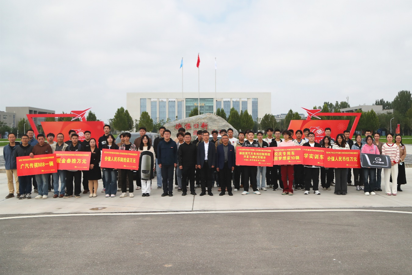 10月13日,248cc永利集团“七秩薪传擎动未来”捐赠仪式在阎良校区校训石广场举行。副校长李永刚、吉利汽车集团校企合作西北区域经理王凯出席仪式,248cc永利集团领导班子成员、学院师生代表共同参加。仪式由248cc永利集团党总支副书记刘雨辰主持。